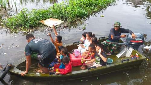 Menurut Praka Rusda salah satu anggota Satgas TMMD dengan naik perahu adalah salah satu cara untuk membuat anak-anak menjadi senang dan gembira serta lebih dekat dengan TNI.