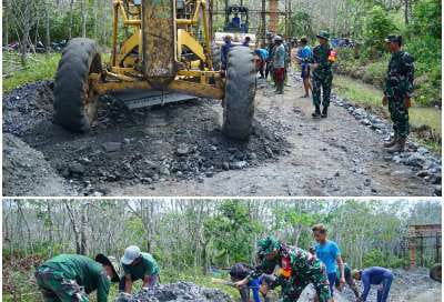 Semangat Gotong Royong, Dandim Tanah Bumbu bersama warga ratakan jalan TMMD