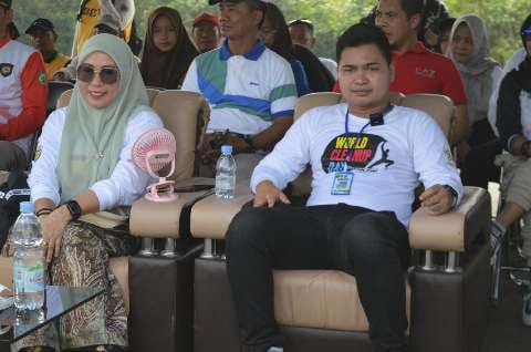 Teks foto: Anggota DPRD Balangan, Sri Huriyati Hadi didampingi Ketua DPD KNPI Kabupaten Balangan Hary Khairil Hadi menghadiri acara Semarak Pemuda Bumi Sanggam. (taufik)