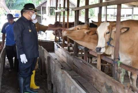 Teks foto: Bupati HSS Achmad Fikry saat melihat hewan kurban.(sofan)
