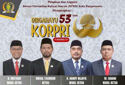 Pimpinan dan Anggota Dewan Perwakilan Rakyat Daerah (DPRD) Kota Banjarmasin Mengucapkan : Dirgahayu 53 Tahun KORPRI