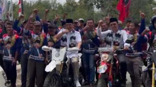 Mujiyat-Fahrin Pakai Motor Trail Mendaftar ke KPU Batola