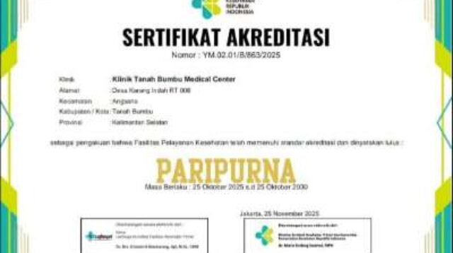 Tanah Bumbu, wartaberitaindonesia.com – Klinik Tanah Bumbu Medical Center (KTMC) resmi mendapatkan sertifikat […]