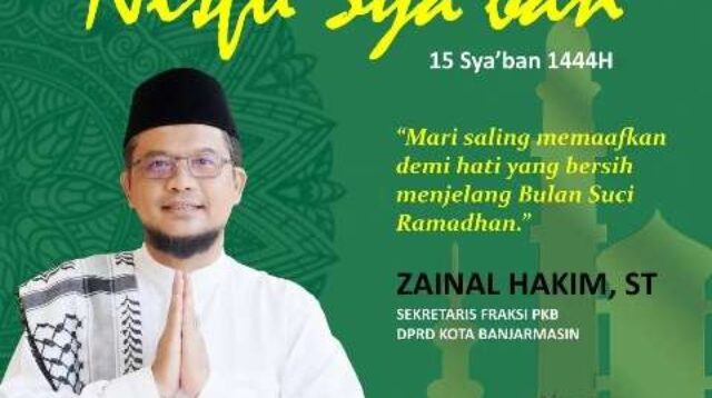 Zainal Hakim, ST Sekretaris Fraksi PKB DPRD Banjarmasin Mengucapkan Selamat Menlaksanakan Ibadah Malam Nisfu Sya’ban