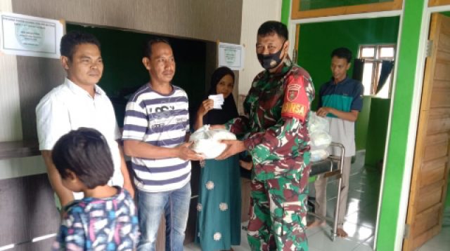 Babinsa Dampingi Pembagian Paket Sembako di Desa Sungai Puting