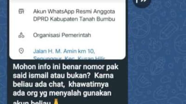Batulicin, wartaberitaindonesia.com - Akun WhatsApp palsu yang mencatut nama dan foto anggota DPRD Kabupaten Tanah […]