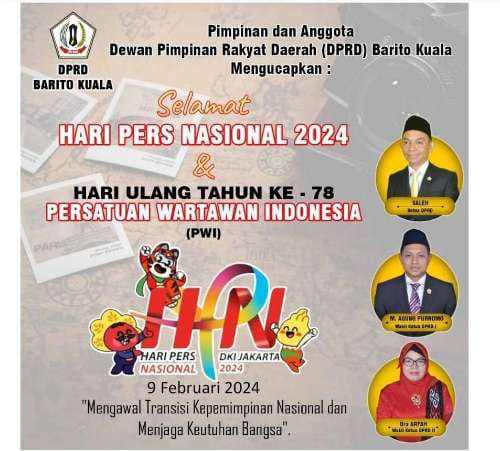 ucapan hari pers nasional , pimpinan dan anggota DPRD Batola admin10 Februari 2024 ucapan hari pers nasional , pimpinan dan anggota DPRD Batola Pos terkaitKetua DPRD HSS Tinjau Pelayanan IGD dan Farmasi RSUD Brigjend Hasan BasryAdrizal Nilai Pembangunan Banjarbaru Semakin Nyata Setahun TerakhirBatola Siap Jadi Tuan Rumah MTQ Nasional XXXVII Tingkat Provinsi Kalsel 2026 Empat Desa di Batola Raih Penghargaan Desa Peduli Stunting 2026Pemkab Batola Gelar Rakor Percepatan Imunisasi, Tekankan Kolaborasi dan InovasiHUT ke-23 Balangan, Sri Huriyati Hadi Ajak Masyarakat Perkuat Kebersamaan Bangun Daerah