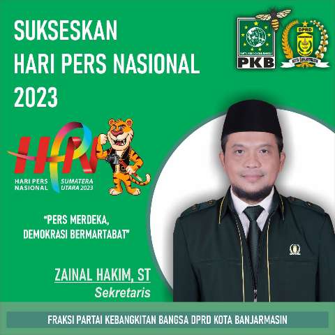Zainal Hakim, ST anggota DPRD kota banjarmasin Sekretaris fraksi PKB mengucapkan Selamat Hari Pers Nasional 9 Februari 2023 “Pers Bebas, Demokrasi Bermartabat”