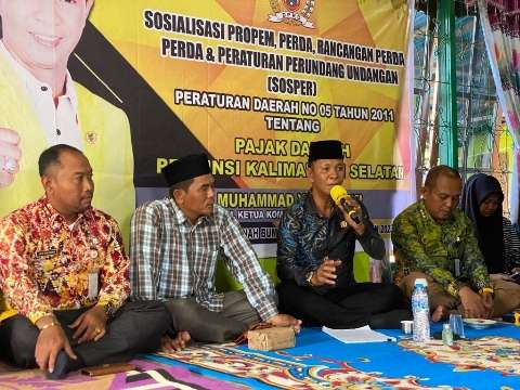 Sosialisasi Peraturan Daerah (Sorper) Nomor 05 Tahun 2011 tentang Pajak Daerah Provinsi Kalsel di Desa Pandansari, Kecamatan Karang Bintang Kabupaten Tanah Bumbu, Jumat (8/9).